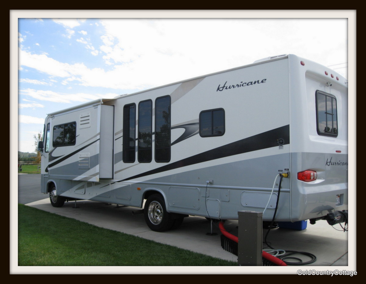 What fun, Judy. That is a beautiful coach. The place you are in looks like a decent park, too. MyHero looked for a 1976 GMC motor home for years and finally found one. It was a certain one- Royale with all the bells and whistles for that time. The inside is in perfect shape except everything is ORANGE- BURNT ORANGE. So, we are in the process of redoing it and hope to take it out in the Spring....with NO MORE ORANGE! xo Diana