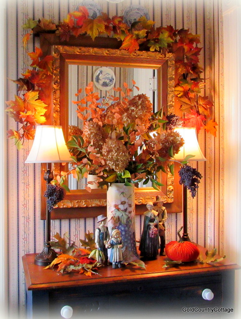 DeleteOh, Judy! I love the fall colors around your home. I do miss those leaves, except having to rake them up, when we lived in upstate New York. We don't have many fall colors here in south Texas. Love always how you decorate your home and love how you've done your mirror! Hope you're having a great week and good luck with your shots. We got our boosters a few weeks ago and didn't have any side effects.